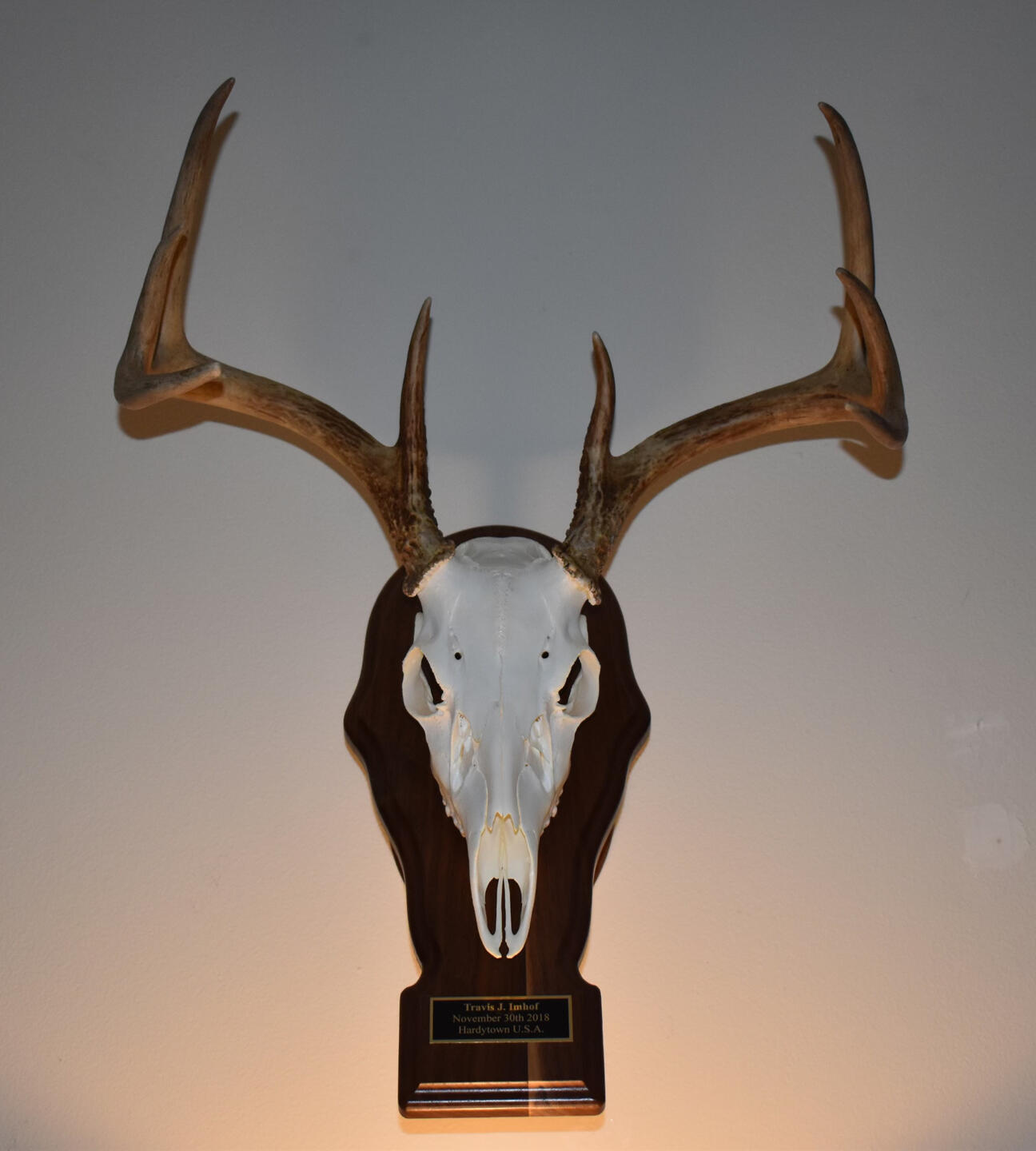 Travis began hunting and trapping wild game in the Pocono Mountains at age 12 - he is a successful archery, rifle, and muzzleloader subsistence hunter, harvesting deer and bear in the Pocono Mountains, and hunting wild boar near Kiln, Mississippi. Travis is an avid trapshooter and reloader, and preserves wild game skulls for local customers. Please click below for European skull mounting fees.